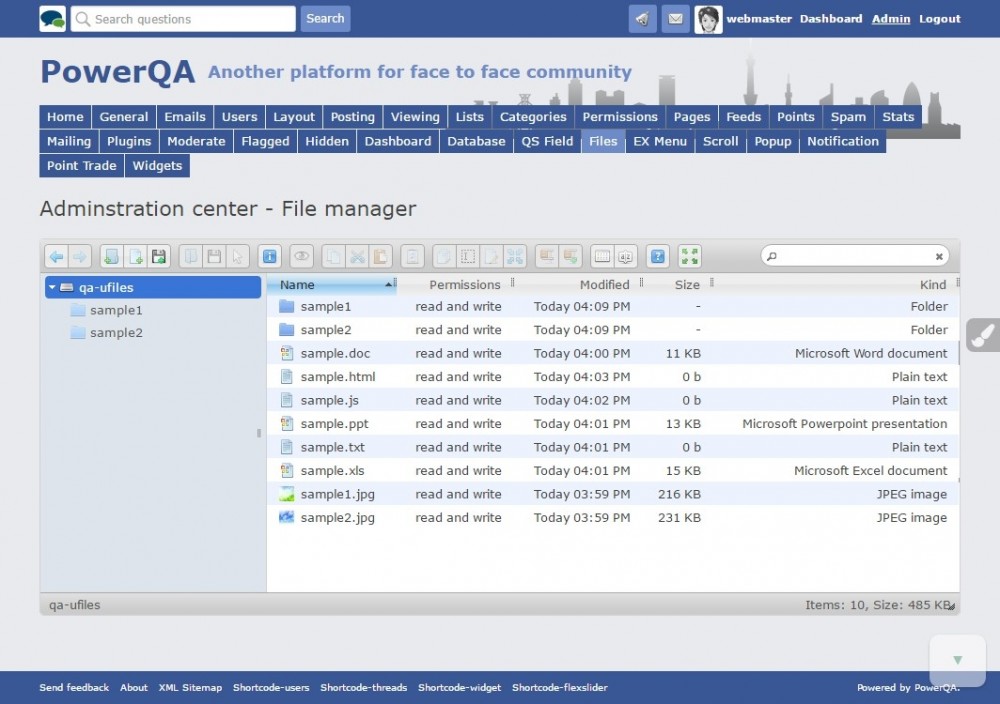 I'm developping "File Manager Pro" plugin. This plugin integrate elFinder into PowerQA. It is useful for uploading CSS images, *.pdf, *.doc, *.xls, etc files to the server.