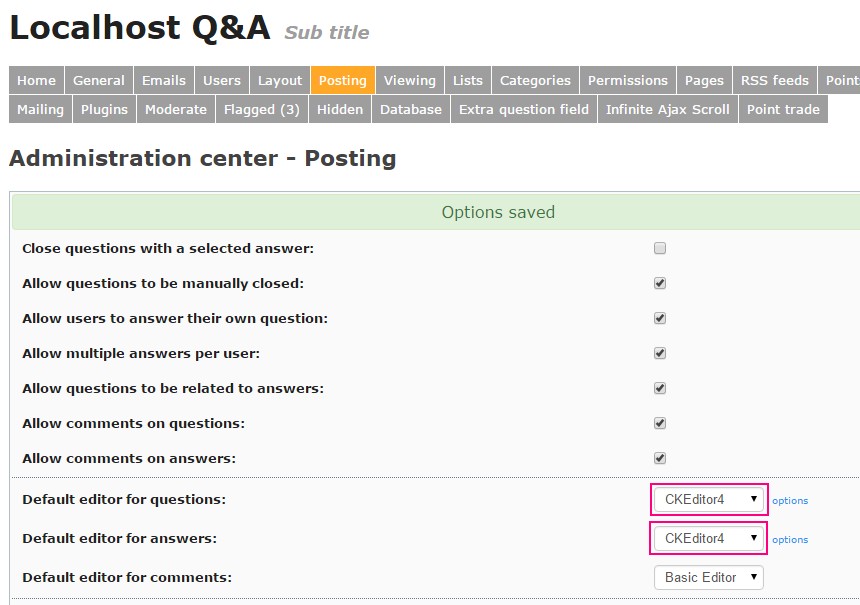 25. Select CKEditor in "Default editor for questions" and "Default editor for answers"