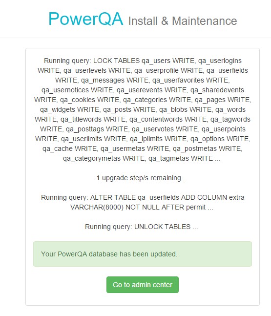 Yeah, I also was thinking Migration test. Database of PQA V1.0 has been changed from Q2A V1.7.1. However, I raised the database version from "59" to "60". Refer to qa-include/install/qa-db-install.php in details.