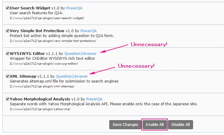• Prefix ("pqa-") was attached to all of plugins folder. By this change, when you overwrite PQA to Q2A V1.7.1, all of existing plugin will remain. If existing plugin is compatible with PQA, you will be able to use favorite one.