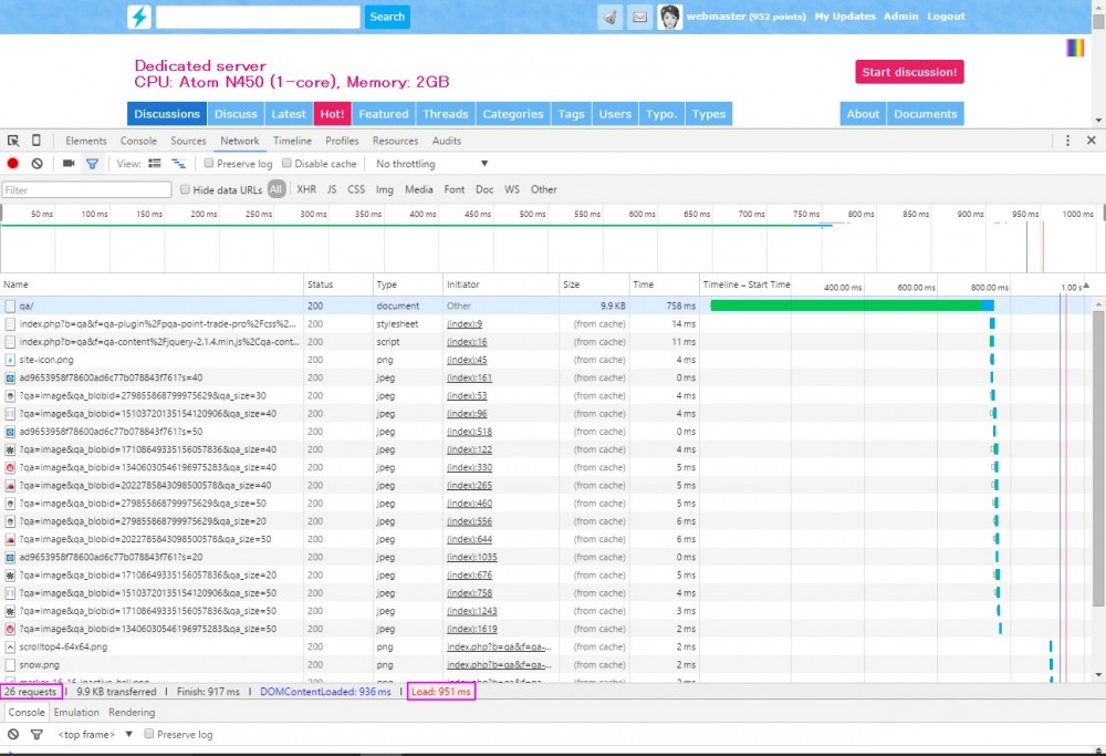 PQA (Server: Intel ATOM N450 1 core): 26 requests, 0.95 sec (This site)