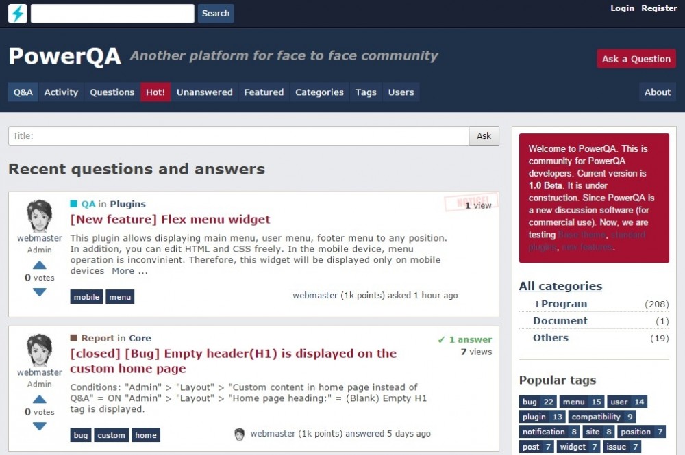 Welcome to PowerQA. PowerQA is a new discussion software (not OSS). Here is a community for PowerQA developers. Current stable version is V1.9.4. It is enhanced day by day.