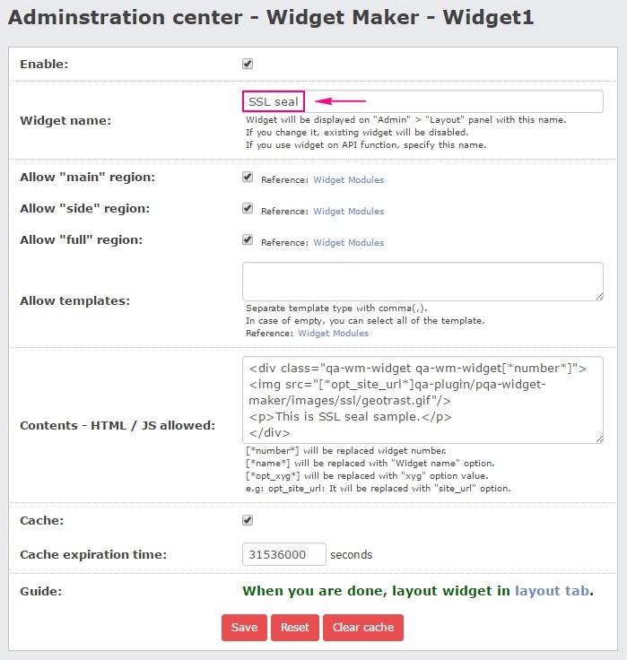 • Widgets that you have created will be controlled (Add, Edit, Remove, Change region, Change template) by "admin" > "Layout" > "Widget" of PowerQA core.
