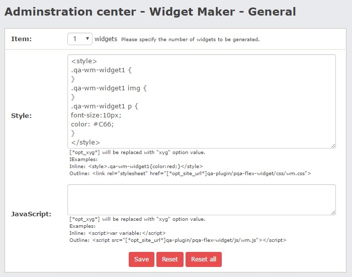 • CSS and Javascript for widget